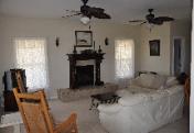| You can sit in the large living room and watch TV or go to the den and enjoy quiet reading time. The kitchen is well stocked and has room for more than one cook. There is a large dining room off of the kitchen that will seat the whole family. |