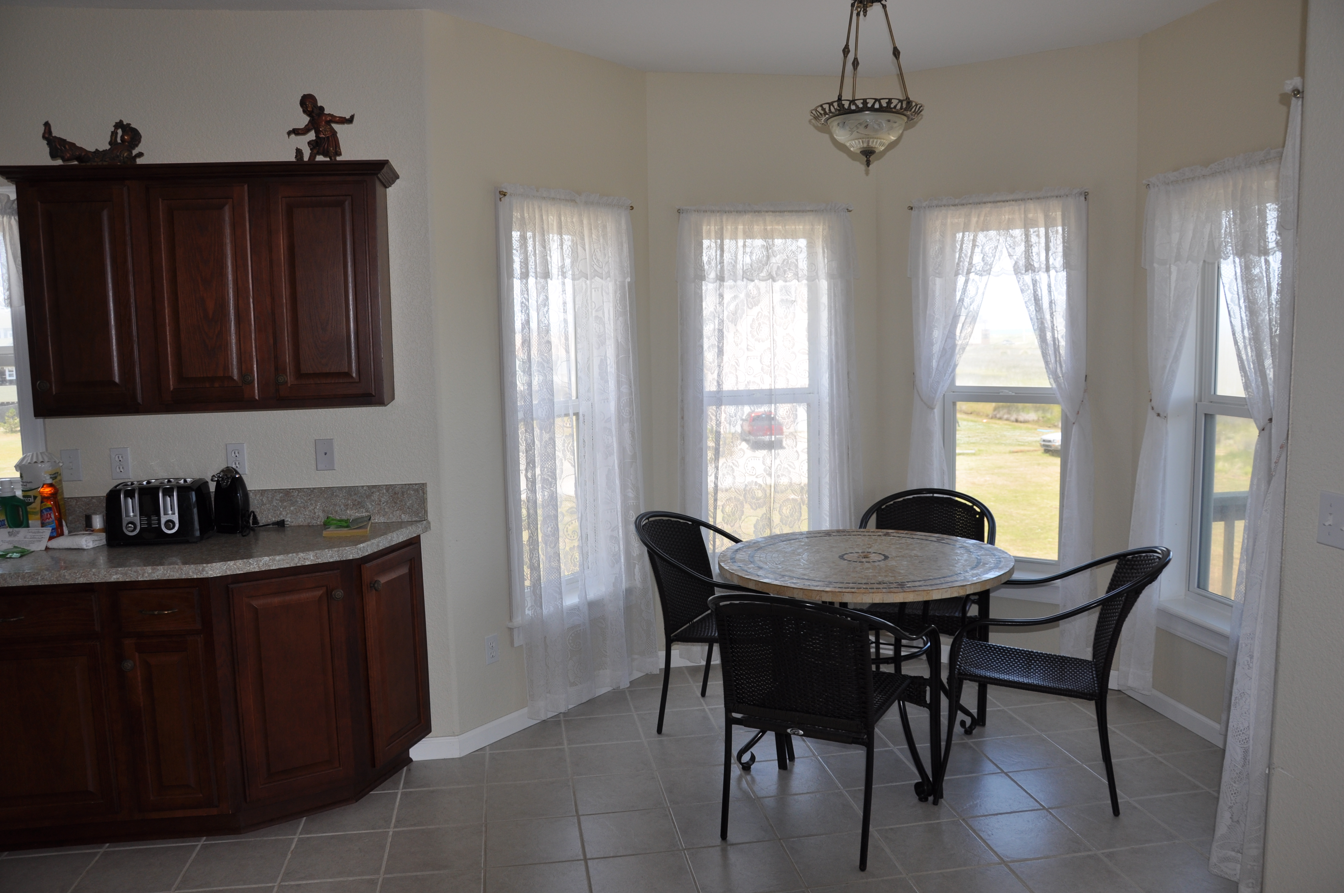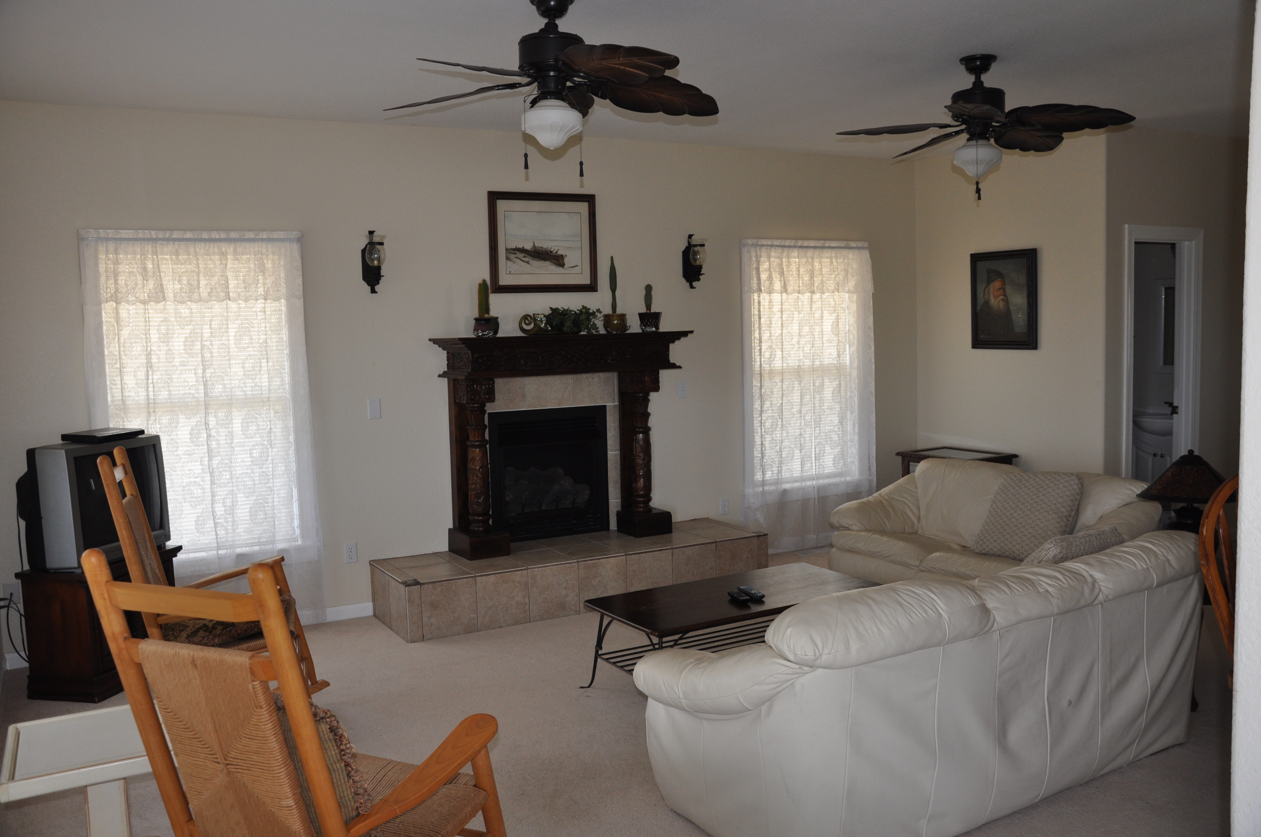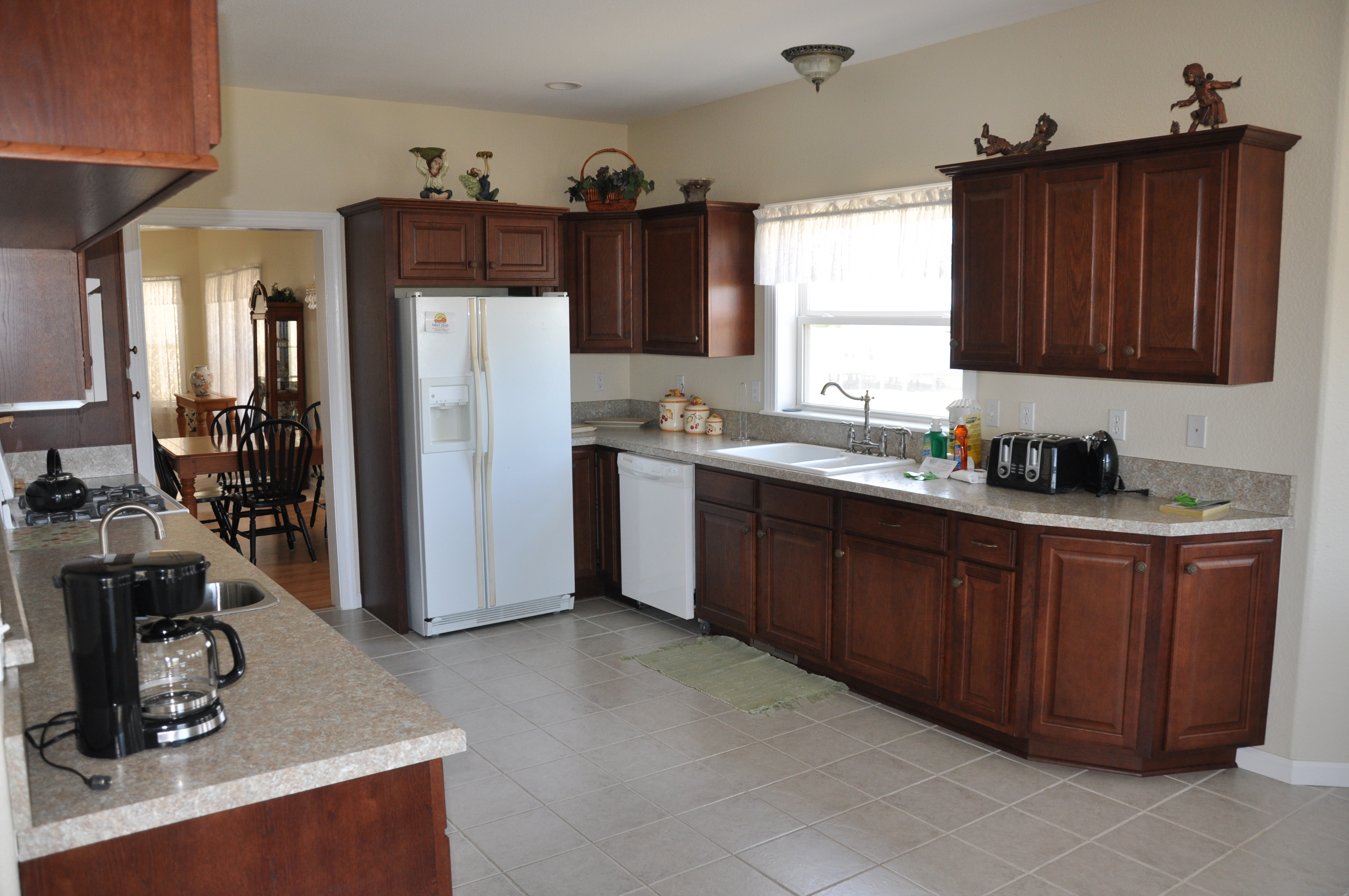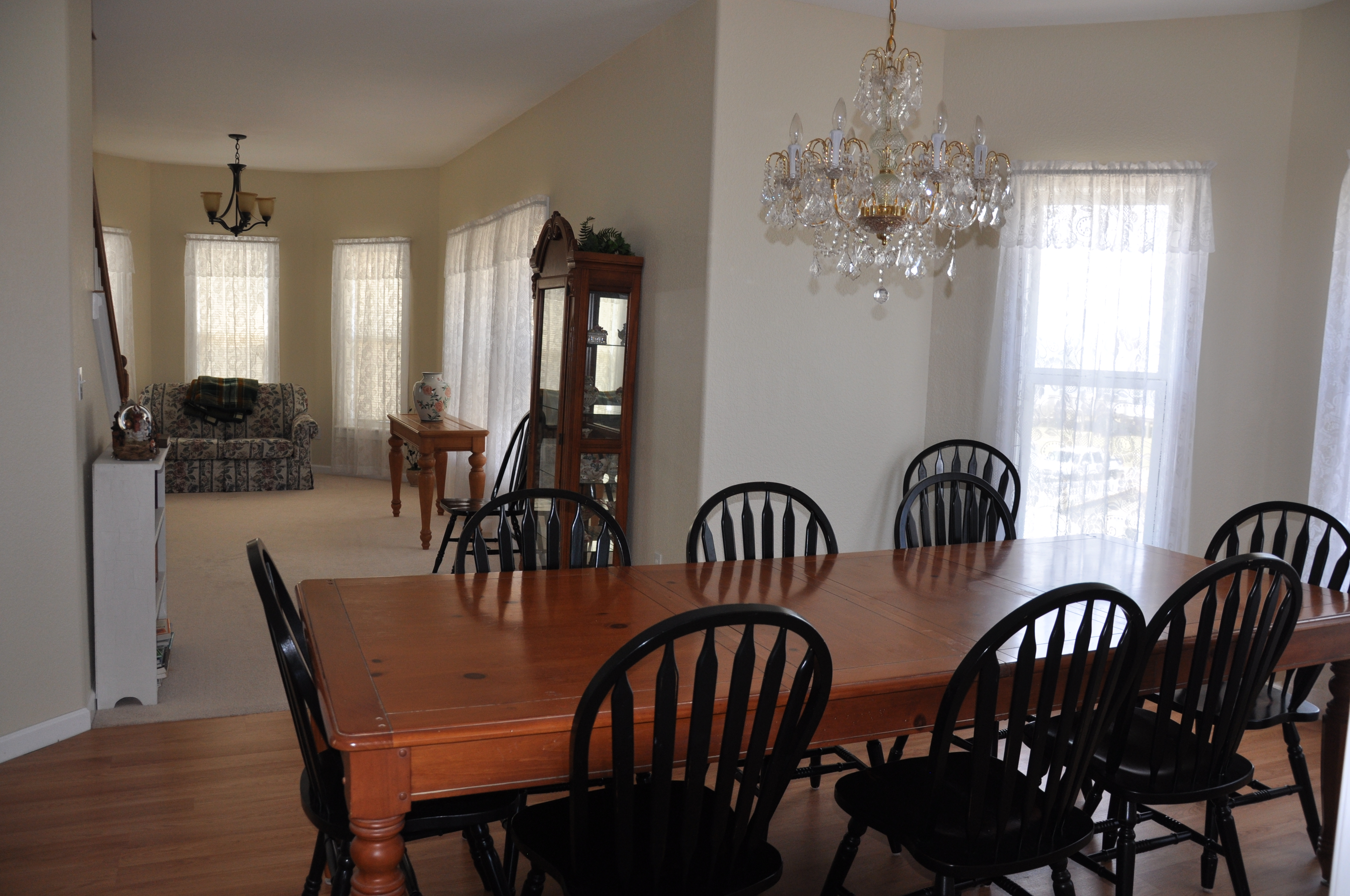 | You can sit in the large living room and watch TV or go to the den and enjoy quiet reading time. The kitchen is well stocked and has room for more than one cook. There is a large dining room off of the kitchen that will seat the whole family. |